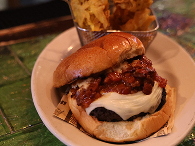 7oz blend topped with bacon, melted cheese, and gold-standard caramelized onions finished with truffle oil.