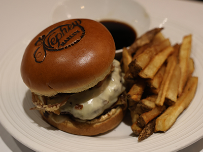 Gruyere caramelized onions with roasted garlic aioli, crispy onion on a brioche bun.